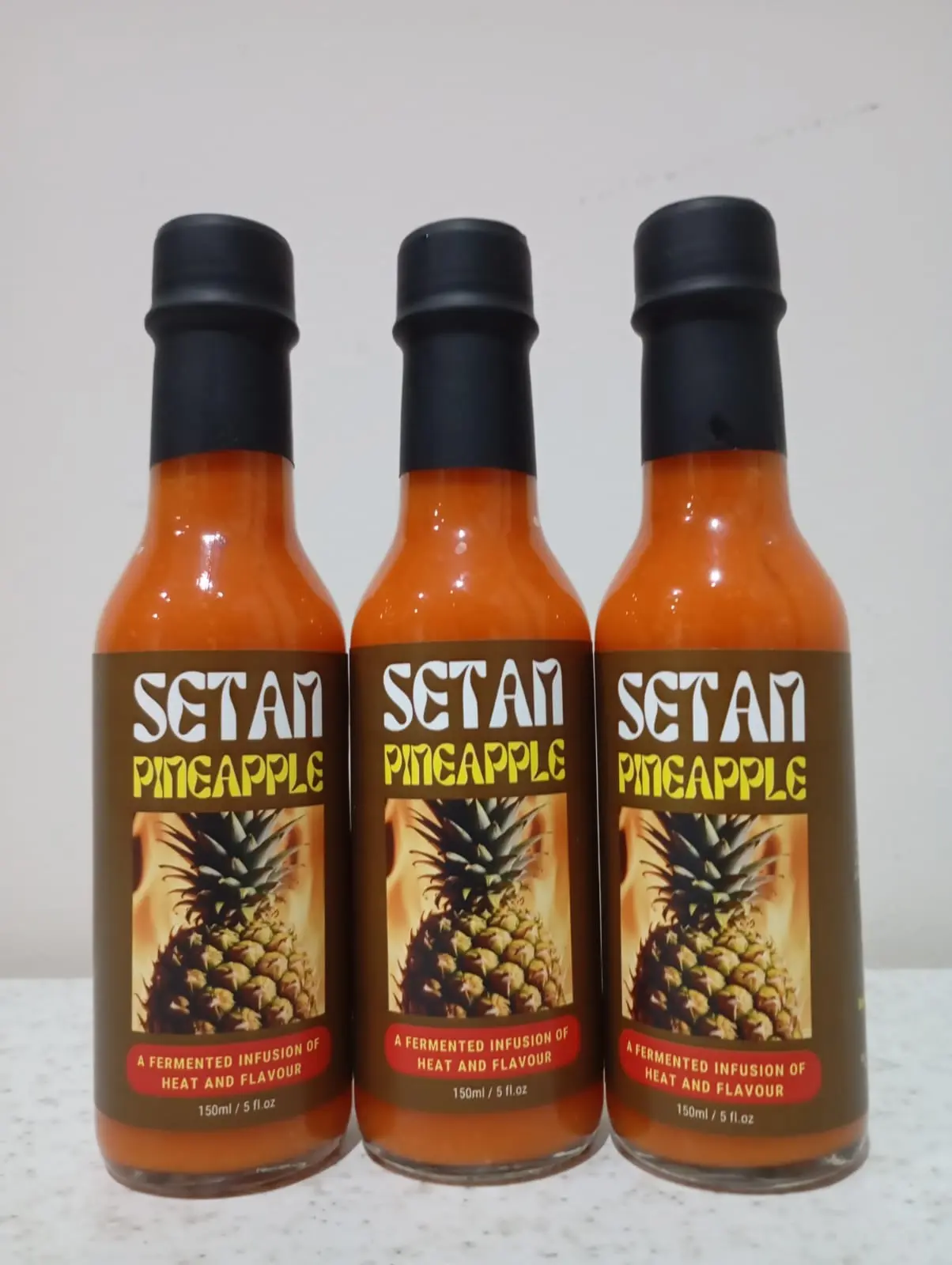 Setan Pineapple blends Indonesiaโs fiery cabe setan with sweet nanas madu (honey pineapple) for a bright, bold balance of tropical sweetness and devilish heat.