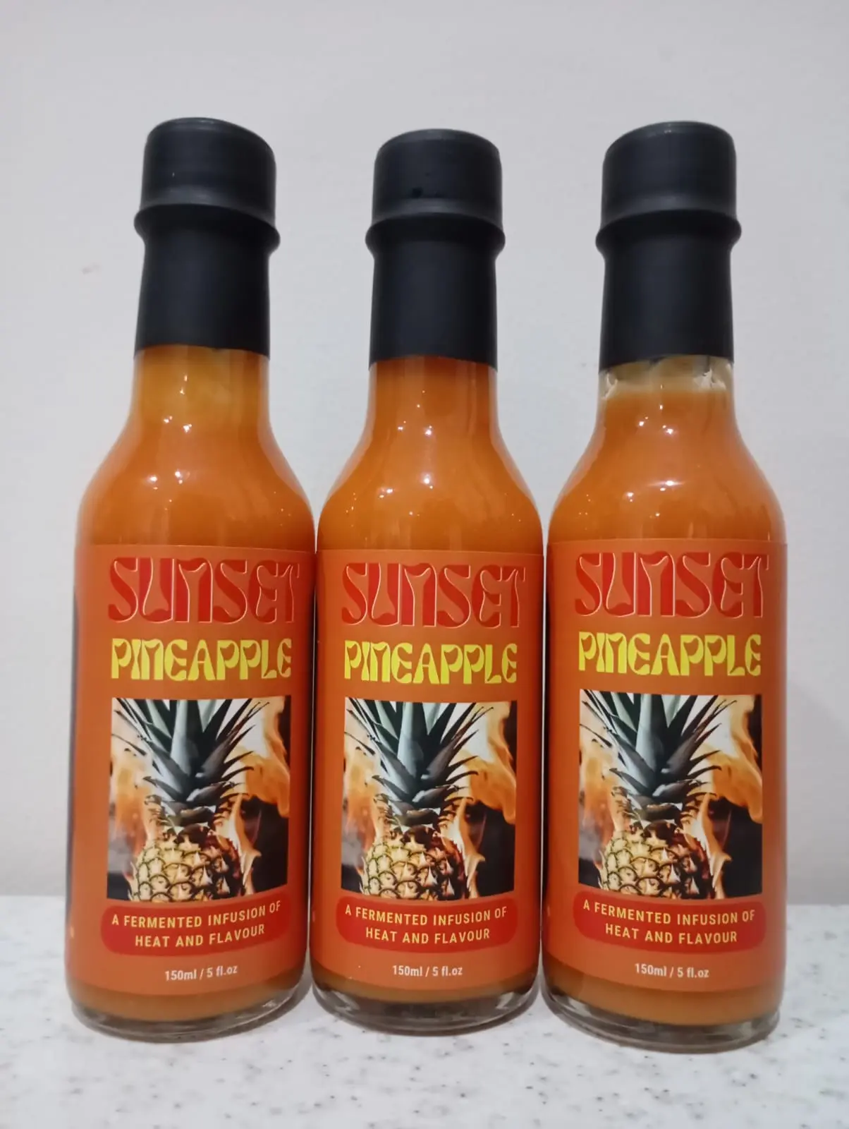 A tropical fusion of Sunset Peach chilies and luscious pineapple. Sunset Pineapple is a sweet and spicy hot sauce that electrifies your taste buds!