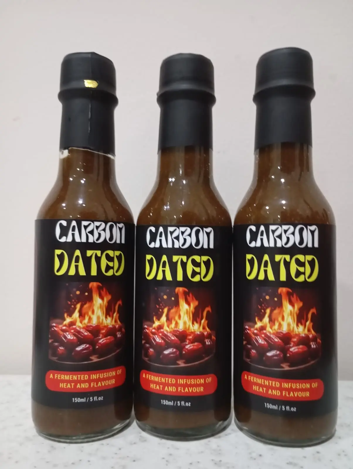 Carbon Dated combines fiery local cabe setan with rich, velvety Mazafati dates for a uniquely smooth sweet-heat experience. Deep, earthy sweetness meets bold spice, creating a sauce thatโs intense, complex, and seriously unforgettable.