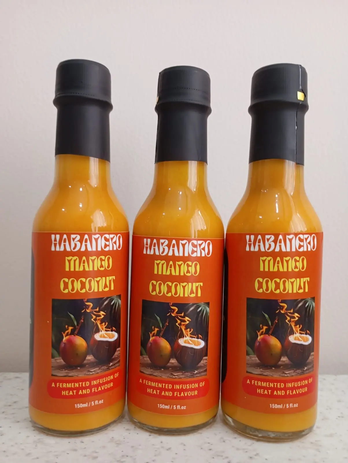Orange habaneros, Gedong Gincu mango and fresh coconut. Spicy heat.